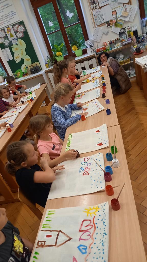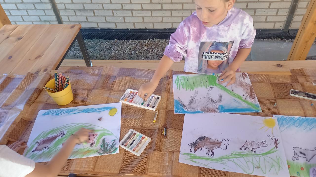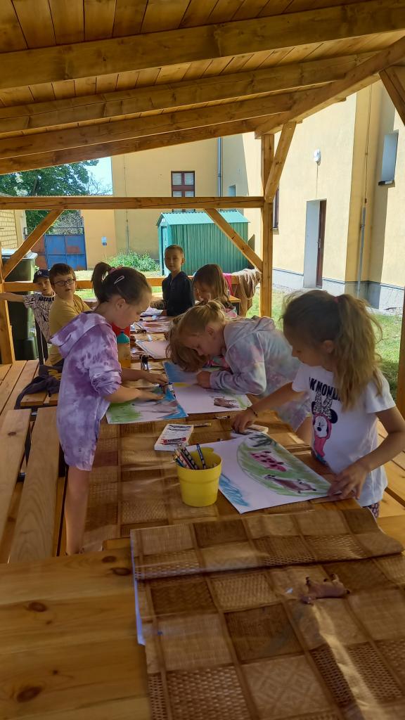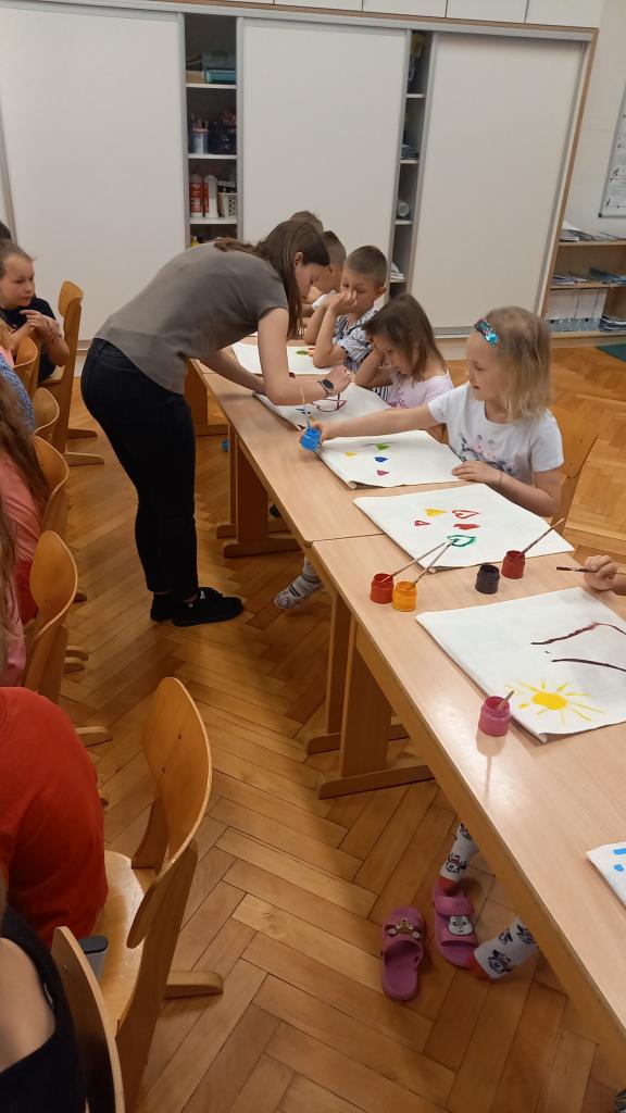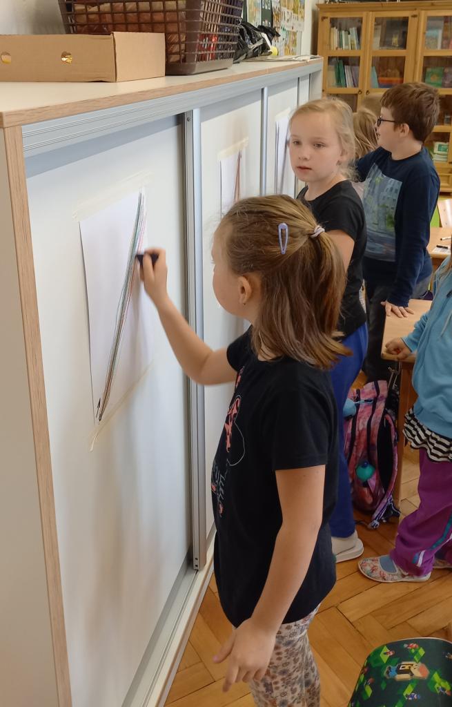 Také jsme společně otevřeli naši venkovní učebnu a těšíme se na dny učení venku. Zatím jsme si vyzkoušeli dvě hodiny výtvarné výchovy. Trochu nás zlobil vítr, ale všechny nás to bavilo.