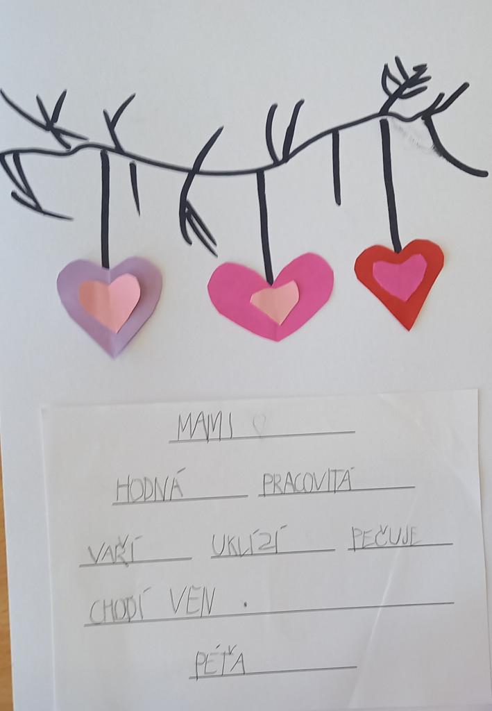 Víme, že druhou květnovou neděli mají svátek naše maminky. Proto jsme celý týden připravovali přáníčka, dárečky, v hodinách jsme s tímto tématem hodně pracovali. A těšili se, jakou radost budou ty naše maminky mít, až jim vše předáme. Myslím, že se povedlo.