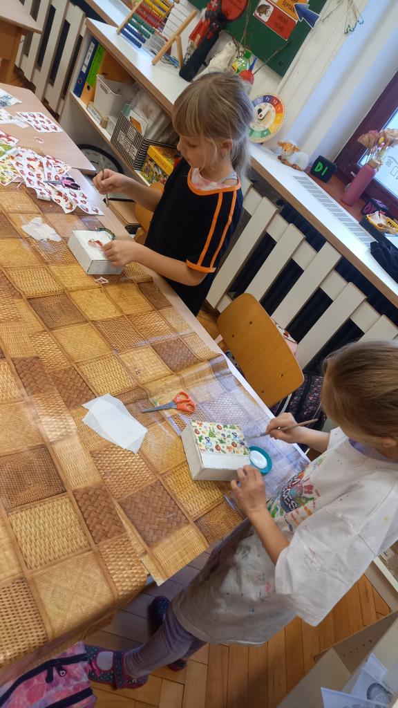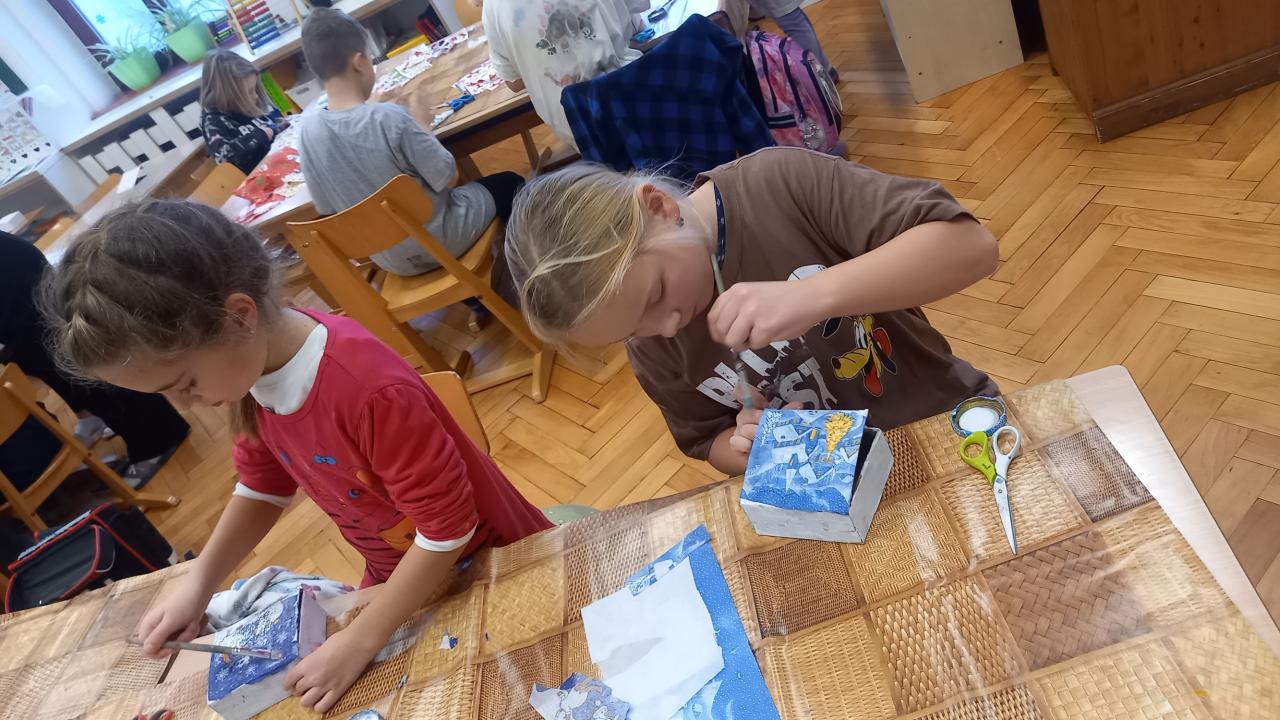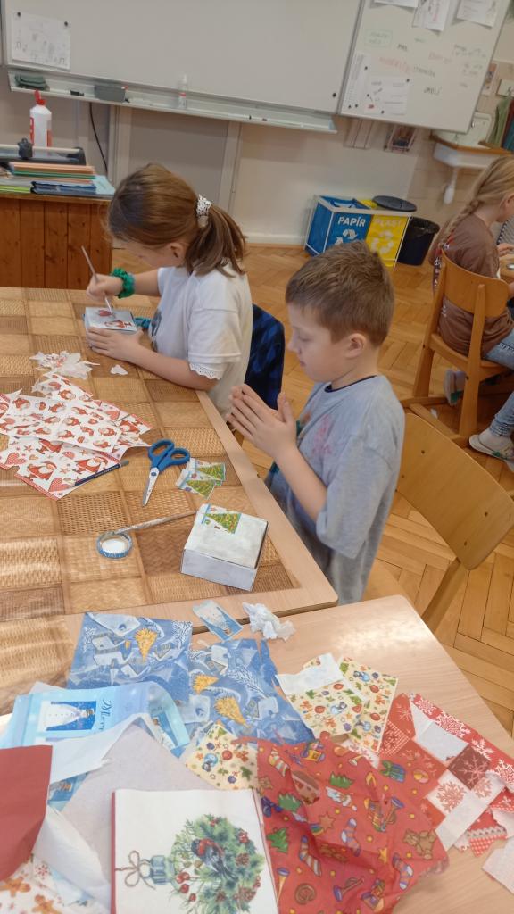 Poslední týden před vánočními prázdninami si děti vyráběly přáníčka a dárečky. Opět překvapily svou zručností a u výroby své "diamantové" hvězdy svou pečlivostí a trpělivostí.