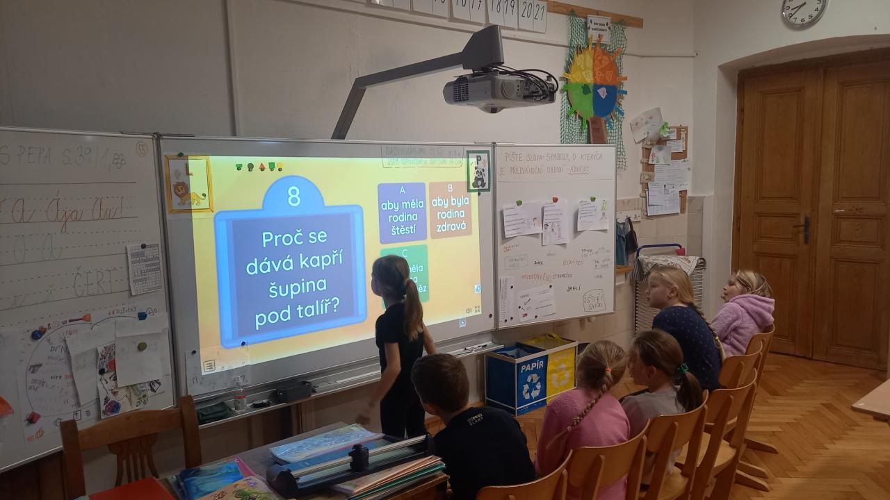 Společné adventní dny při předčítání knihy Úžasné Vánoce Matyáše Kotrby nám všem zpříjemňoval třídní adventní kalendář. Myslím, že jsme si úplně každý užili plnění úkolů, které si druháčci sami vymysleli: "Tancovali jsme, cvičili, někoho napálili, zasmáli se, báli jsme se při výstupu na půdu, na chvíli jsme i propadli do 1.třídy - no prostě samé vylomeniny."