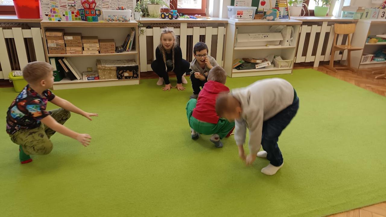 Procvičovali jsme také pravolevou orientaci a zahráli si na různá zvířata – proměnili jsme se v hada, včelu i žábu. Velkou zábavou bylo skládání vět z obrázků a popisování děje na obrázku.