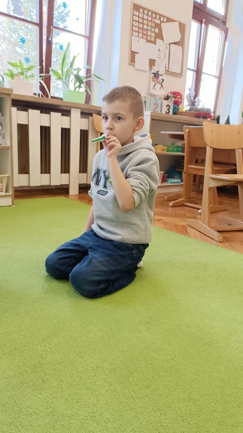 Nezapomněli jsme ani na dechová cvičení – foukali jsme do kazoo a trénovali správné dýchání. Nakonec jsme podpořili jemnou motoriku skládáním tvarů.