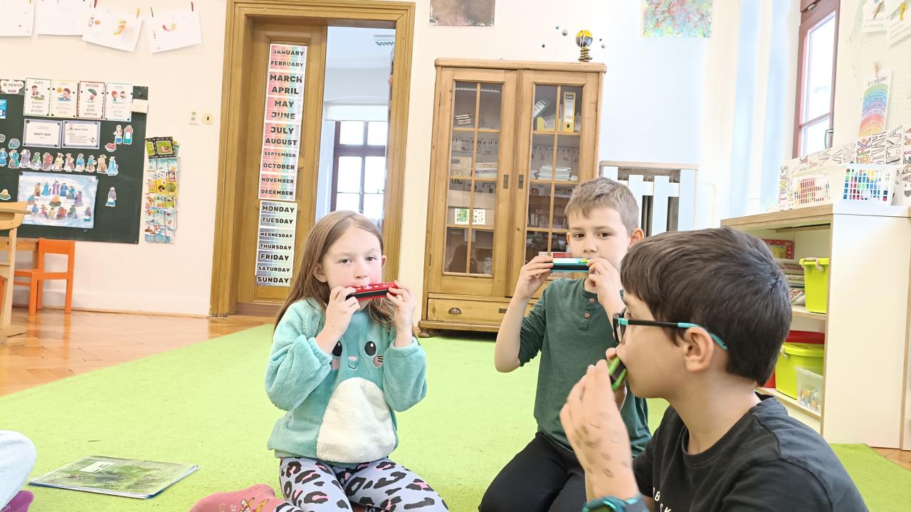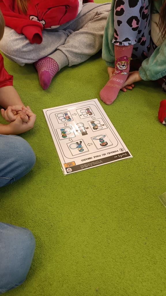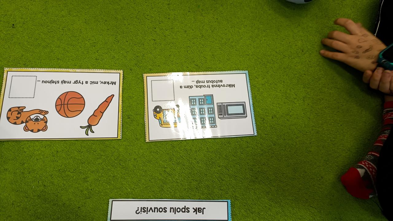 Oromotorické cviky jsme procvičovali u deskové hry, dech jsme trénovali s foukací harmonikou. Společně jsme si povídali o obrázcích, hledali, co mají společného, a zkoušeli jsme vyprávět příběh krok za krokem. Na závěr jsme si ještě procvičili jemnou motoriku.