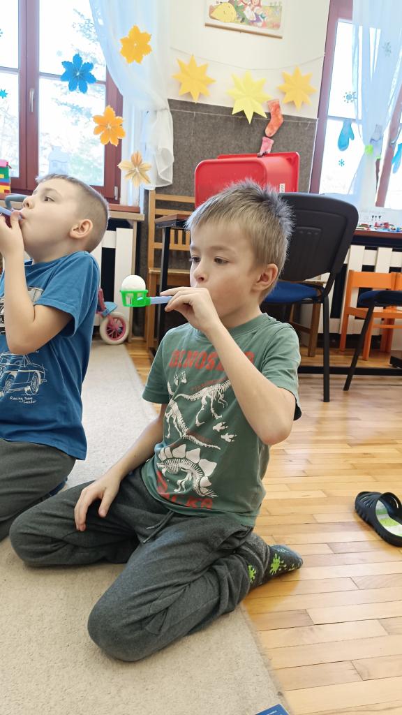 V logopedickém kroužku jsme rozvíjeli řeč hravou formou. Procvičovali jsme správné dýchání pomocí kouzelného míčku a oromotorická cvičení zaměřená na jazyk, rty a obličejové svaly.