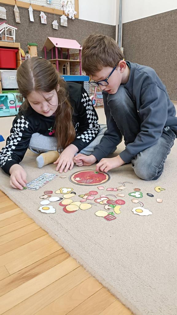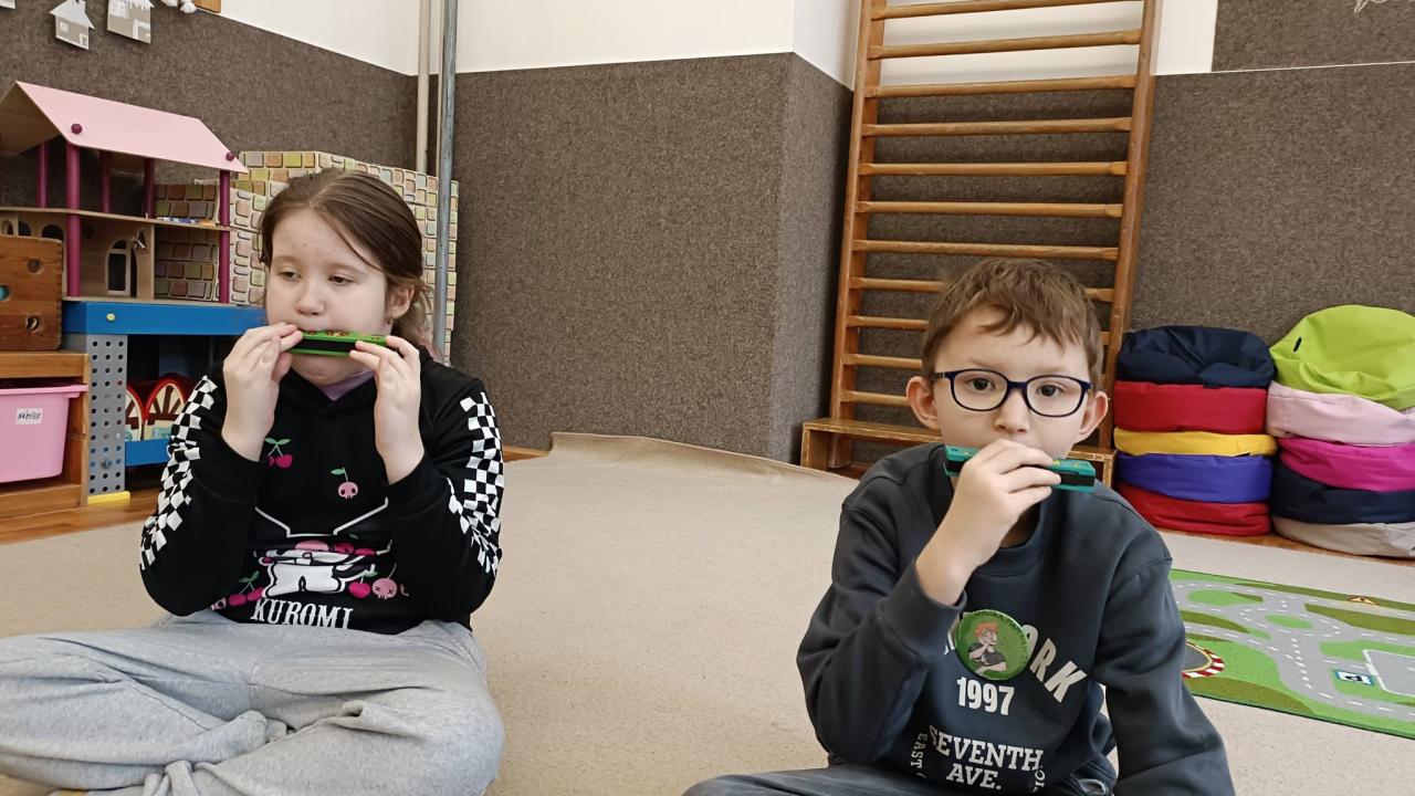 Rozhýbali jsme jazýček, vyzkoušeli dechová cvičení s foukací harmonikou 🌬️, společně jsme domýšleli příběh „Na co by asi mohl myslet“ a potrénovali paměť při hře s obrázky. Na závěr jsme si zahráli hry na rozvoj jemné motoriky 🧩.