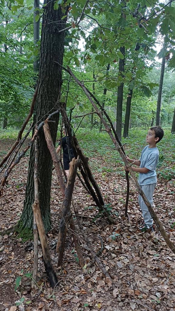 Na závěr si děti stavěly v lese domečky z přírodnin. Vznikly tak nádherné stavby plné fantazie, které by se jistě líbily i samotnému Borisovi. 🌲🍂