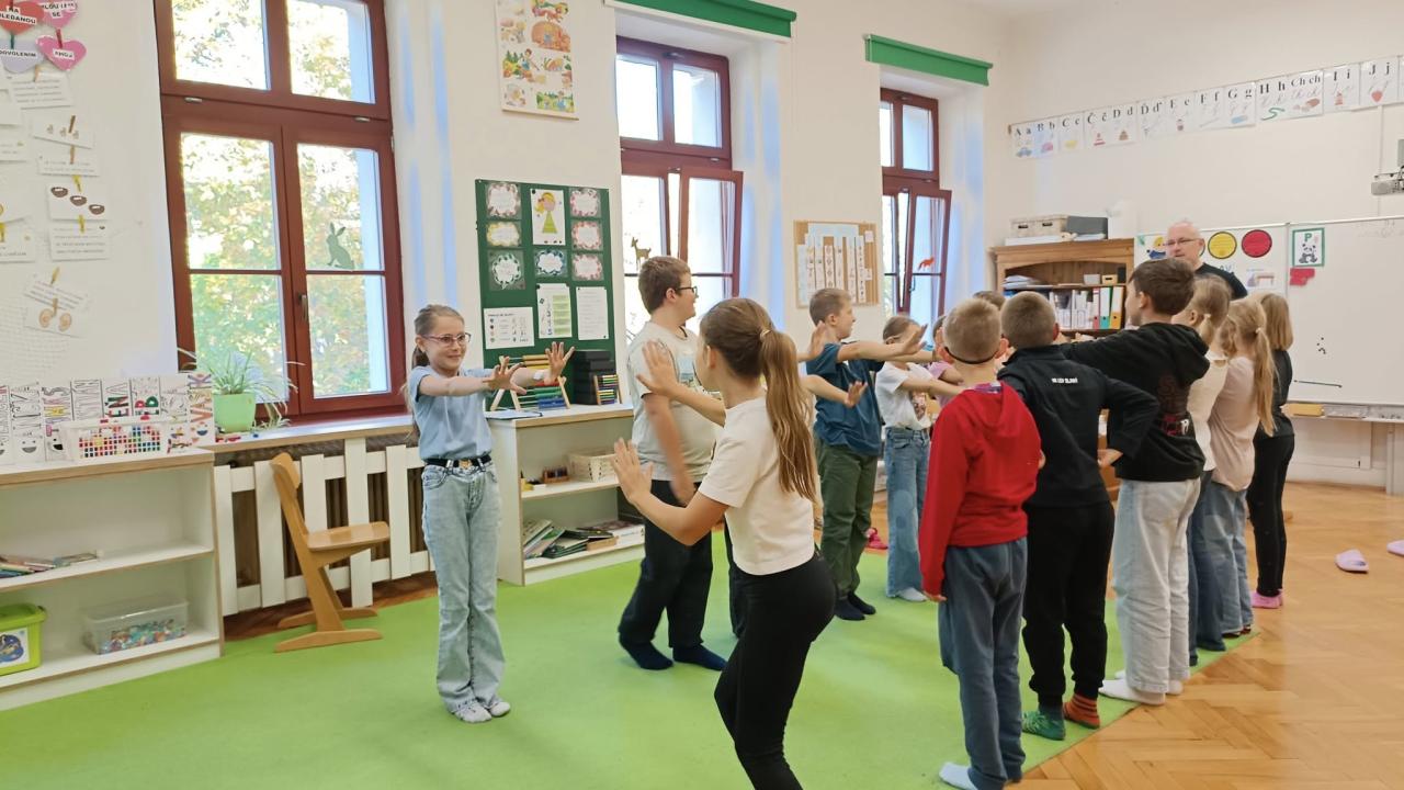 Součástí programu byla také cvičení zaměřená na spolupráci ve skupině, vzájemnou podporu a respekt mezi spolužáky.